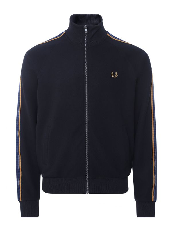 Lend your casual layers sports-inspired attitude with the Fred Perry medal tape track jacket. Engineered in a premium tricot fabric with stretch, the jacket will ensure essential comfort. Featuring a stand collar, zip fastening and side entry pockets, whilst the embroidered Laurel Wreath and striped tape trim offer signature Fred Perry detail.