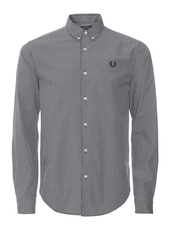 The Fred Perry Micro Gingham Shirt is cut from micro gingham fabric and finished with the brand’s embroidered laurel wreath. Designed with a button-down collar and button-through front, it provides a neat option for smart-casual dressing. Long sleeves with buttoned cuffs and a gently curved hem give a clean line whether worn tucked or untucked. The shirt fastens with buttons and features subtle tailoring across the back. It is made from 100% cotton for breathable, comfortable wear. Ideal for layering under a Sweater or blazer.