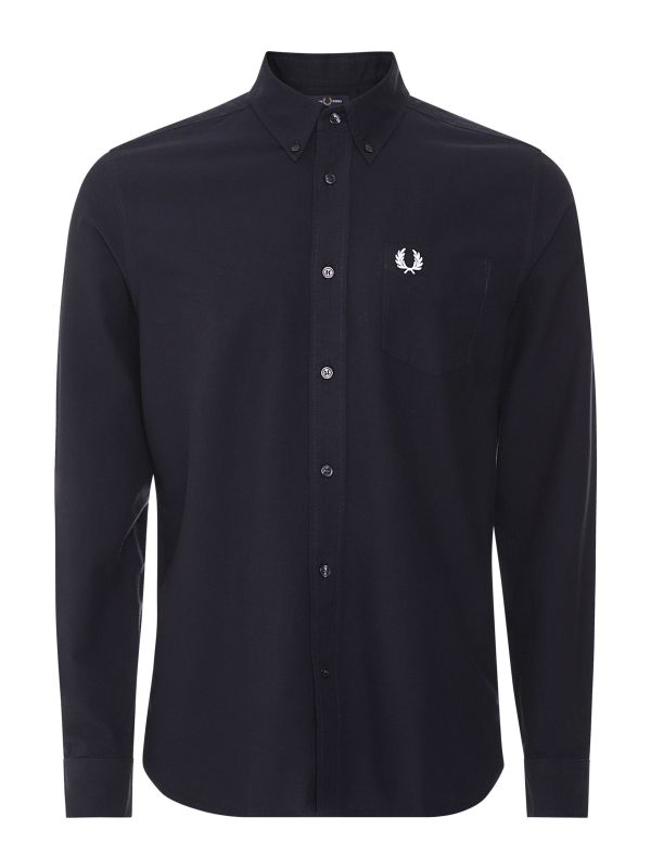 Drawing influence from European tailoring, the Fred Perry Oxford shirt is a staple smart-casual option. Crafted in pure cotton Oxford, the navy shirt guarantees comfort with a regular fit. Featuring a button down collar, buttoned cuffs and single patch pocket, whilst the embroidered Laurel Wreath lends iconic detail.