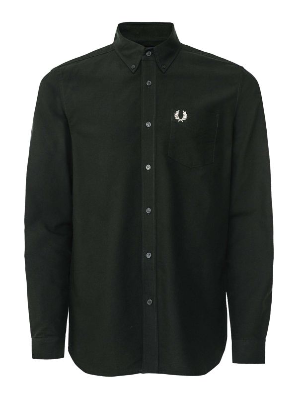 The Fred Perry Oxford shirt is a staple smart-casual option. Crafted in pure cotton Oxford, the night green shirt guarantees comfort with a regular fit. Featuring a button down collar, buttoned cuffs and single patch pocket, whilst the embroidered Laurel Wreath lends iconic detail.