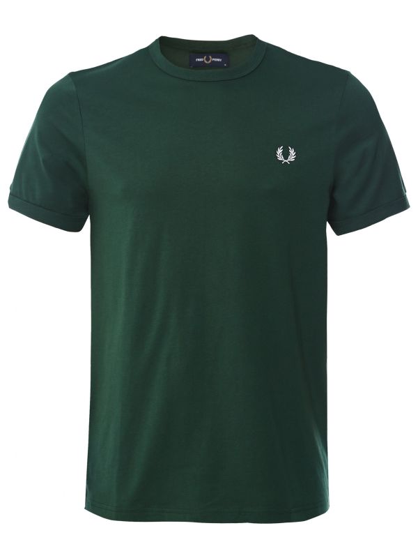 Defined by its iconic ringer trims, the Fred Perry ringer t shirt is a fail-safe for your casual wardrobe. Engineered in pure cotton jersey, the ivy green tee will ensure day-long comfort. Featuring short sleeves, classic crew neck and ribbed trims, whilst the embroidered Laurel Wreath adds a signature finish.