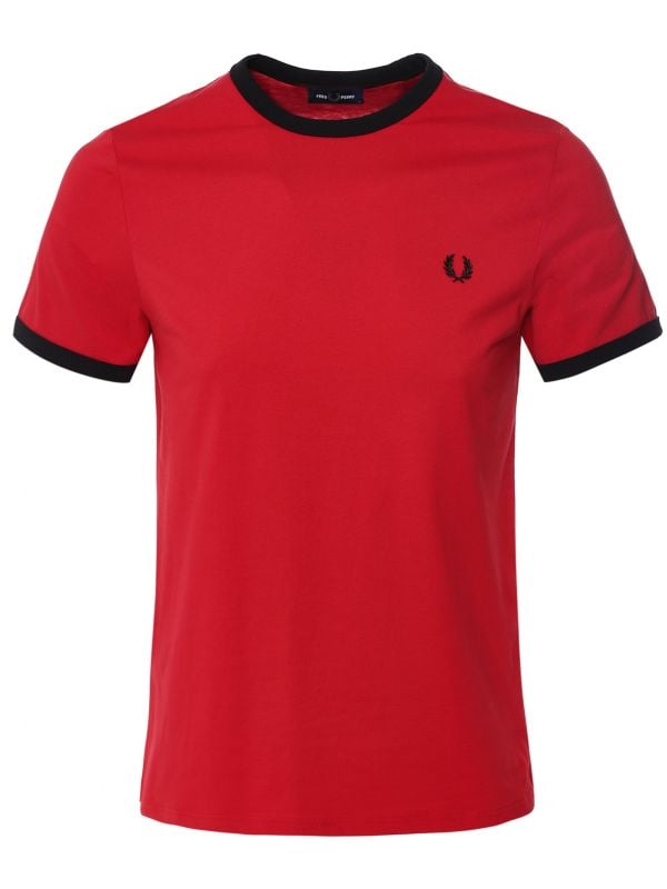 Brighten up your casual basics with the Fred Perry ringer t-shirt. Crafted in traditional cotton jersey, the red t-shirt offers a super soft handle and comfortable fit. Featuring a contrast ringer collar and cuffs for a retro-sports aesthetic, whilst the label's famous Laurel Wreath is embroidered to the chest for an iconic finish.