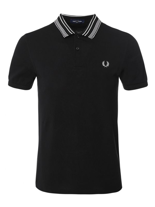 The Fred Perry striped collar polo shirt is packed with modernist attitude. Crafted in traditional cotton pique, the black polo shirt features a striped ribbed collar, two button placket and ribbed cuffs, whilst the famous Laurel Wreath is embroidered to the chest for an iconic finishing touch.