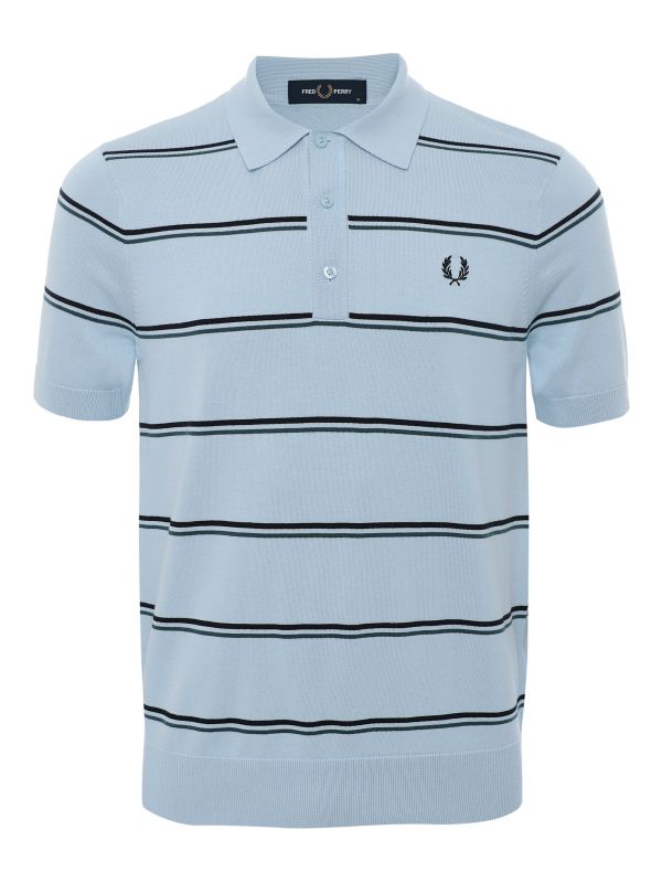 The Fred Perry striped knitted polo shirt combines classic style with a modern twist, crafted from soft knitted cotton for a comfortable, breathable feel.