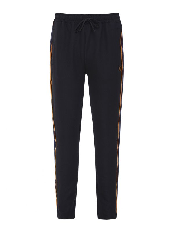 Lend your casual layers sports-inspired attitude with the Fred Perry striped tape track pants. Engineered in a premium tricot fabric with stretch, the joggers will ensure essential comfort. Featuring an elasticated drawstring waistband and side entry pockets, whilst the embroidered Laurel Wreath and striped tape trim offer signature Fred Perry detail.