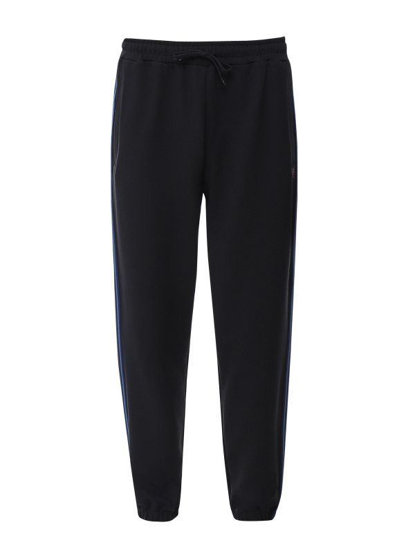 Derived from classic sportswear but with smart sub-cultural style, the Fred Perry taped track pants are a casual must-have this season. Crafted in traditional sporty tricot twill, the black joggers have been cut to a slim fit for a contemporary silhouette. Featuring an elasticated drawstring waist, side-entry hand pockets and embroidered Laurel Wreath, whilst the striped tape trim to the sides provide dynamic appeal.