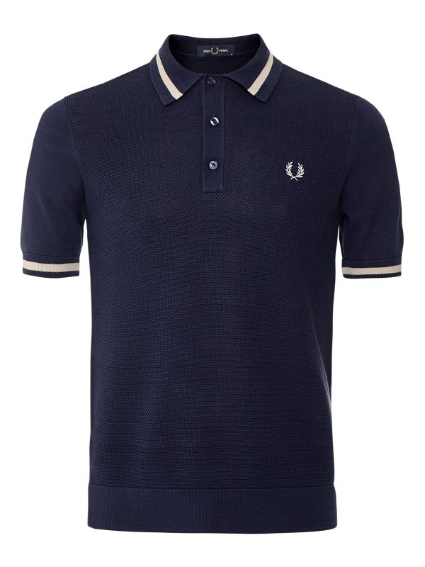 Refine your off-duty attire with the Fred Perry textured knit polo. Engineered in pure knitted cotton, the top has been given a pique textured front for a tactile feel. Featuring a flat knit collar and cuffs, ribbed hem and contrast tipped trims, with the famous Laurel Wreath adding iconic detail.