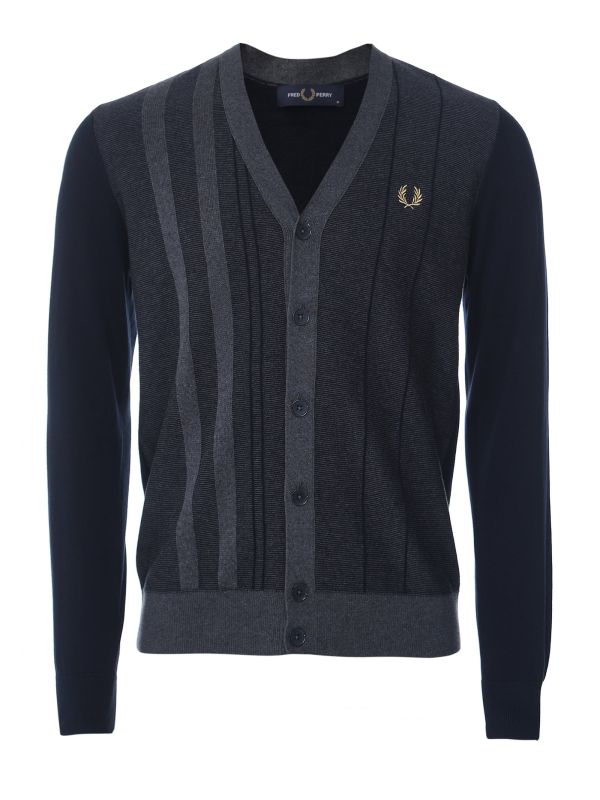 The Fred Perry striped cardigan takes inspiration from the label's iconic tipping. Knitted in premium cotton yarn, the cardigan promises day-long comfort and a super soft handle. Featuring a button-through fastening, ribbed trims and embroidered Laurel Wreath, whilst the subtle ribbed front panel and contrast stripe design exudes retro sports charm.