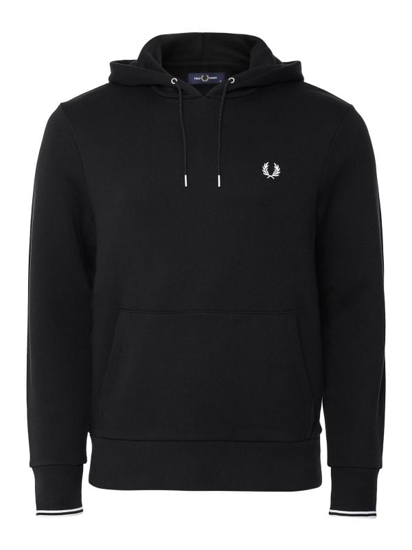 Enhance your casual essentials with the Fred Perry tipped hoodie. Engineered in premium cotton jersey, the black sweatshirt will ensure day-long comfort. Featuring a drawstring hood, kangaroo pocket and ribbed trims, whilst the contrast tipped cuffs and embroidered Laurel Wreath add iconic detail.