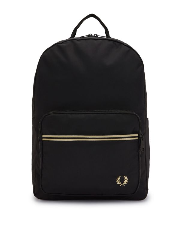 The Fred Perry Tipped Tape Backpack is a practical everyday pack with sports-inspired detailing. It features a double-Zipper main compartment with an internal zipped pocket for organisation, a zipped front pocket with tipped tape, side slip pockets and a top carry handle. Padded, adjustable shoulder straps and a mesh-backed panel add comfort for daily wear, while branded Zipper pulls and an embroidered laurel wreath logo finish the design. Ideal for commuters and students who need organised, comfortable carry for everyday use.