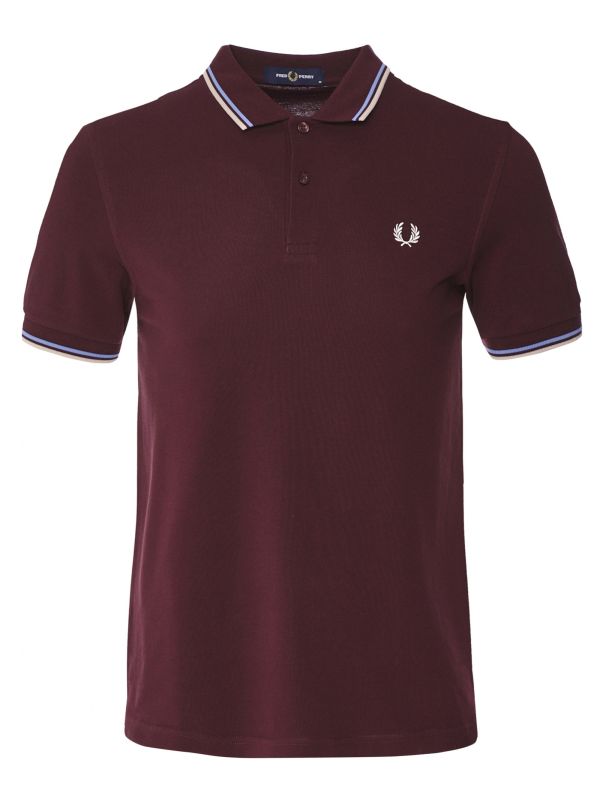 A mainstay in British fashion, the Fred Perry twin tipped polo shirt will become a go-to on casual days. Crafted in premium cotton pique, the polo has been cut to a slightly slimmer silhouette than the label's original M12 style. Featuring a flat knit collar and cuffs, two button placket and iconic Laurel Wreath embroidered to the chest, whilst the sky and natural twin tipping offset the deep mahogany hue.