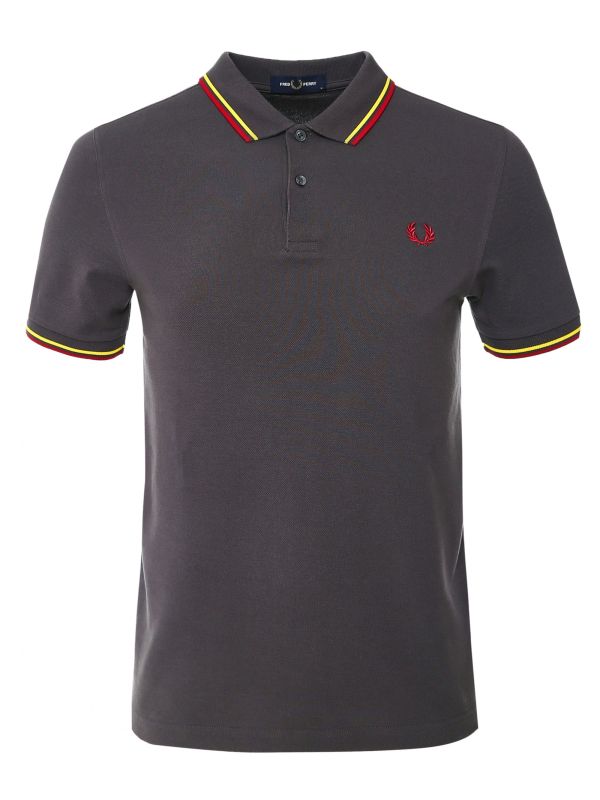 Sharpen up your casual attire with the Fred Perry twin tipped polo shirt. Crafted in premium cotton pique, the polo shirt ensures comfort and breathability. Featuring a traditional two button placket and flat knit collar and cuffs, whilst the gunmetal hue is offset with the label's signature 5-4-4 twin tipping in bright yellow and red. The Fred Perry polo shirt is finished with the label's signature Laurel Wreath embroidered to the chest for unmistakable detail.