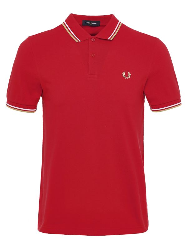 The Fred Perry twin tipped polo shirt is set to liven up your casual attire. Crafted in premium cotton pique, the polo has been cut to a slightly slimmer silhouette than the label's original M12 style. Featuring a flat knit collar and cuffs, two button placket and iconic Laurel Wreath embroidered to the chest, whilst the champagne and white twin tipping offset the vibrant jester red hue.