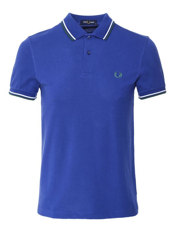 Freshen up your casual go-to options with the Fred Perry twin tipped polo shirt. Crafted in premium cotton pique, the polo has been cut to a slightly slimmer silhouette than the label's original M12 style. Featuring a flat knit collar and cuffs, two button placket and iconic Laurel Wreath embroidered to the chest, whilst the nautical blue hue is offset with white and green tipping.