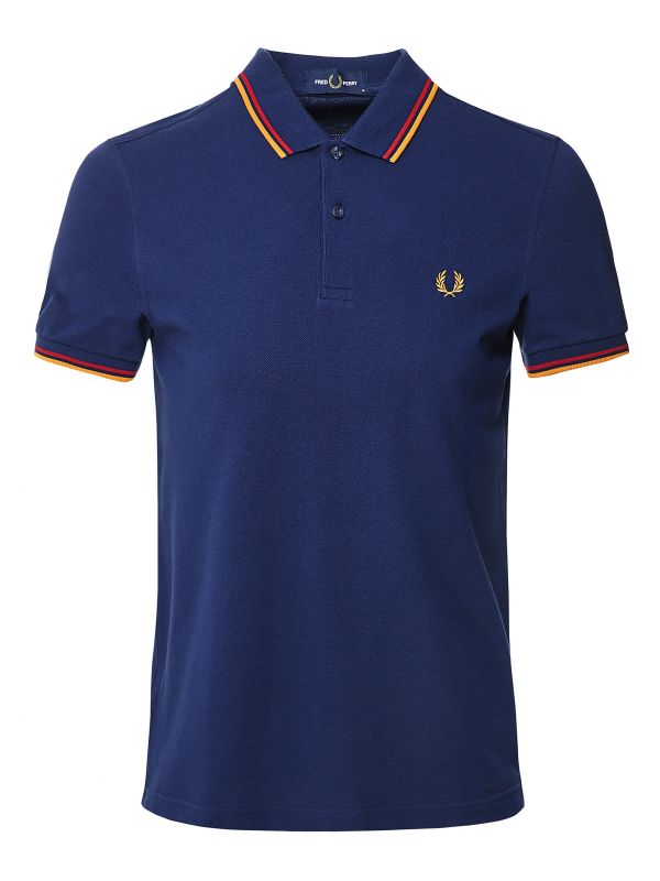A mainstay in British fashion, the Fred Perry twin tipped polo shirt will become a go-to on casual days. Crafted in premium cotton pique, the polo has been cut to a slightly slimmer silhouette than the label's original M12 style. Featuring a flat knit collar and cuffs, two button placket and iconic Laurel Wreath embroidered to the chest, whilst the deep carbon offset with red and amber trim lends modern detail.