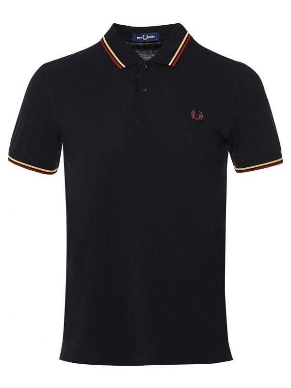 Add distinctive sporty style to your casuals with the Fred Perry twin tipped polo shirt. Crafted in premium cotton pique, the polo shirt ensures comfort and breathability. Featuring a traditional two button placket and flat knit collar and cuffs, whilst the black hue is offset with the label's signature 5-4-4 twin tipping in aubergine and gold. The Fred Perry polo shirt is finished with the label's signature Laurel Wreath embroidered to the chest for unmistakable detail.