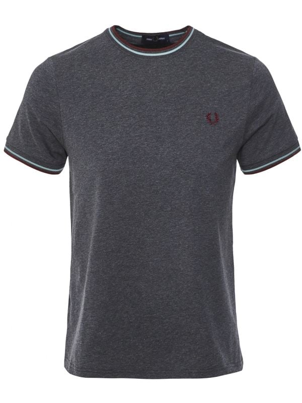 Inspired by the label's signature polo shirts, the Fred Perry twin tipped t-shirt exudes sporty style. Engineered in a lightweight cotton jersey, the grey marl t-shirt features a ribbed crew neck and cuffs adorned with the brand's famous twin tipping, whilst the embroidered port red Laurel Wreath to the chest adds an iconic finish.