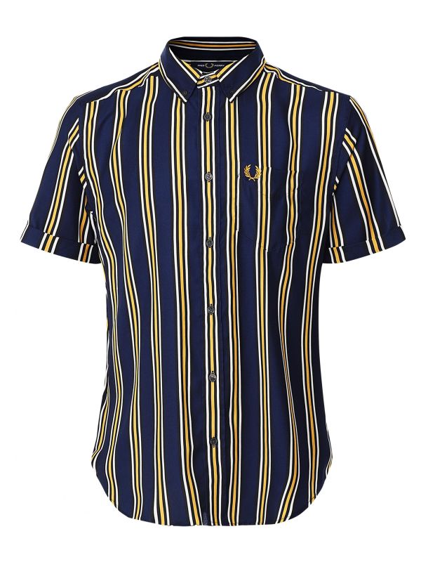 Add retro inspired pattern into your wardrobe with the Fred Perry vertical stripe shirt. Expertly crafted in a lightweight poly fabric and cut to a regular fit, the short sleeve shirt promises day-long comfort. Featuring a button down collar, chest pocket and rounded hem, whilst the embroidered Laurel Wreath lend iconic status.