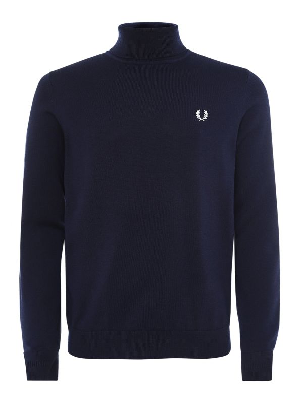 Offering a timeless aesthetic, the Fred Perry roll neck sweater promises to keep you warm whilst sophisticated this season. Carefully crafted in finely knitted merino wool and cotton, the navy sweater showcases superb softness and a lightweight handle. Featuring traditional ribbed trims, with the embroidered Laurel Wreath providing iconic status.