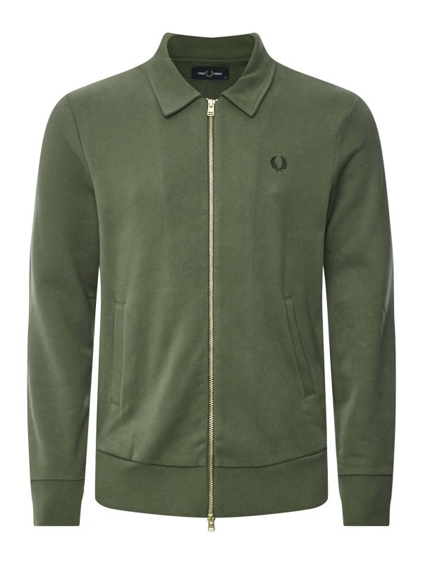 The Fred Perry zip-through sweatshirt brings a sharp, athletic edge to any wardrobe with its high-quality cotton French terry fabric. Featuring a peached-effect finish, this piece combines a sleek, urban look with exceptional comfort. The flat collar and two-way zip closure offer a versatile styling option, while the iconic embroidered Laurel Wreath adds a touch of classic Fred Perry flair.