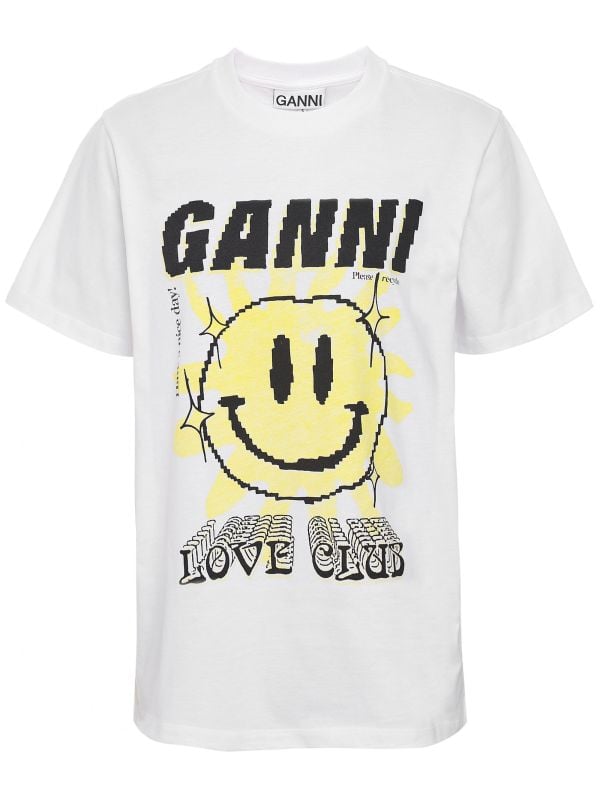 The GANNI Love Club Tee is a must-have to carry you through your casual outfits this Spring/Summer. Expertly crafted from pure organic cotton, the t-shirt offers a super comfy and stylish relaxed fit. Boasting the brand's signature logo and smiley, this tee will stay with you for years to come with its premium quality and timeless aesthetic.