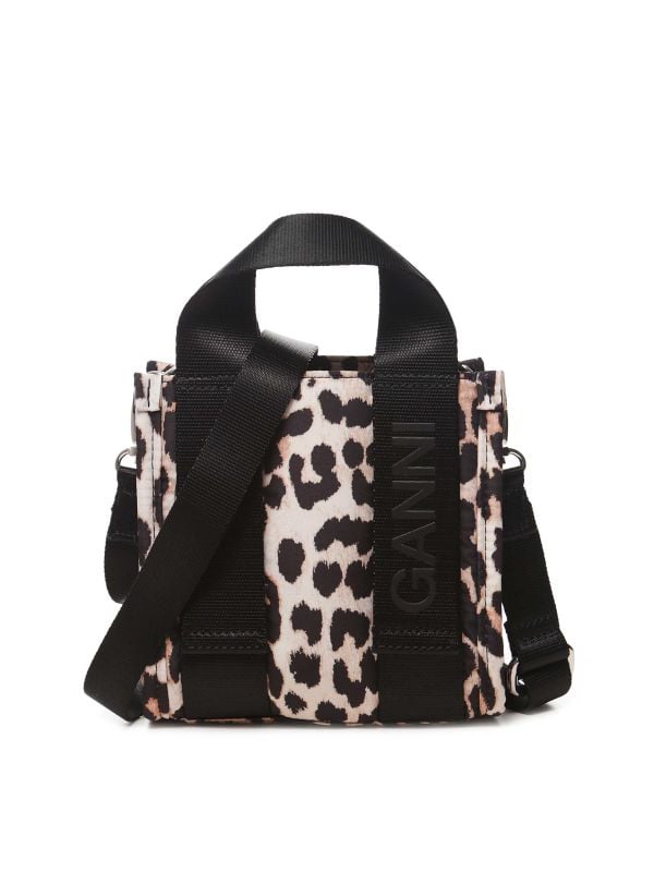 The GANNI mini leopard tote is a super-cool accessory that will add a bold finishing touch to any look. Made from recycled polyester, this responsibly-crafted bag features top handles, an adjustable and removable shoulder strap, GANNI logo webbing details and a drawstring closure.