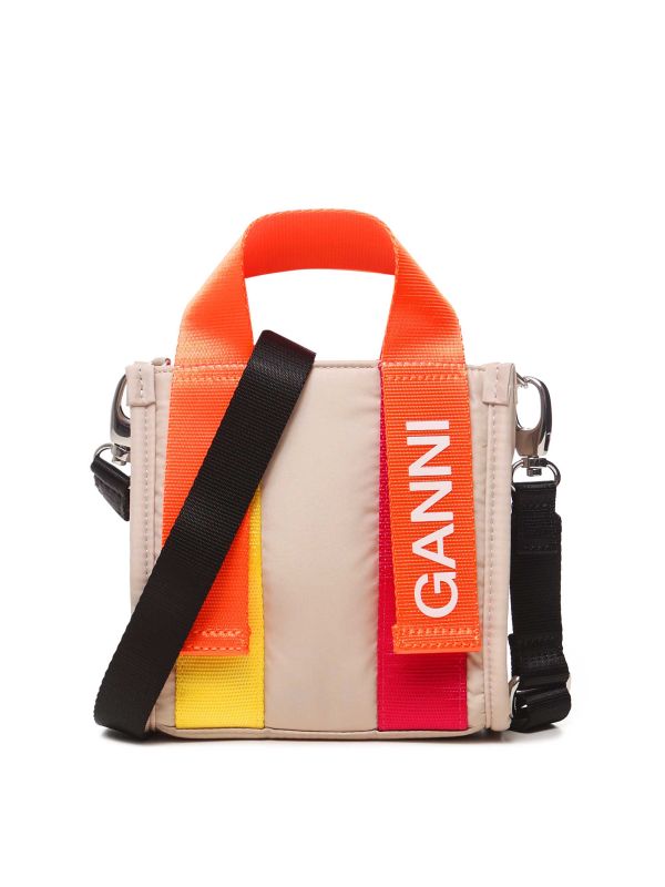 The GANNI mini tote is an effortlessly stylish accessory, designed to add a bold pop of colour to your everyday looks. Made from recycled polyester, this responsibly-crafted bag features top handles, an adjustable and removable shoulder strap, GANNI logo webbing details and a drawstring closure.