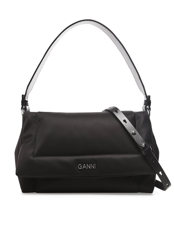 Add a minimalist finishing touch to any look with the GANNI pillow crossbody bag. Made from recycled polyamide, this sustainably crafted bag has a padded design, foldover top, logo plaque detail and two straps that allow it to be worn in multiple ways.
