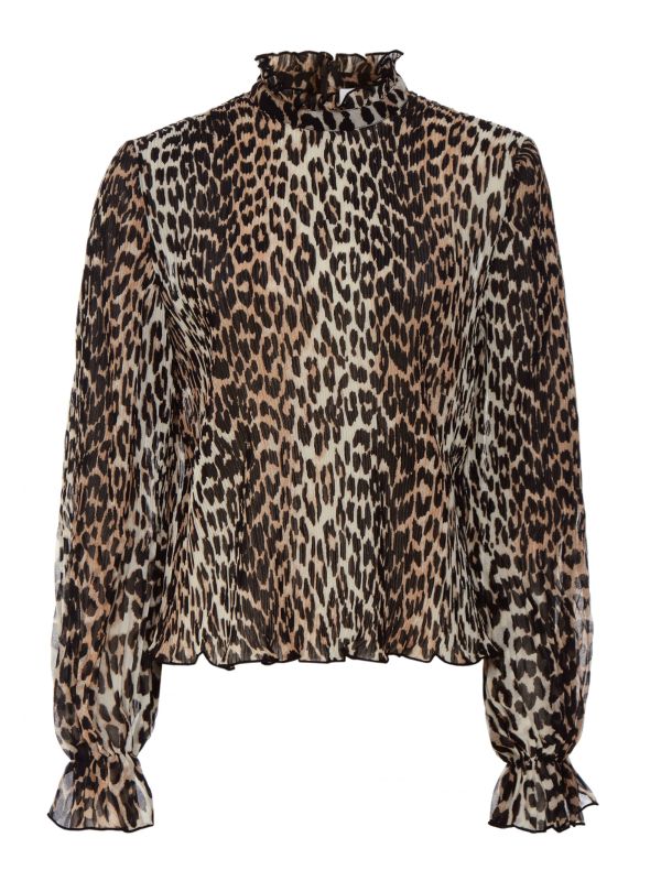 The Ganni pleated georgette blouse is a bold and ultra-stylish staple for your everyday wardrobe. This refined top features a high neck, fine pleating throughout and soft ruffles at the cuffs and collar, whilst an all-over leopard print ensures an on-trend finish. Wear yours with your favourite jeans or team with a skirt and ankle boots for a chic smart-casual look.