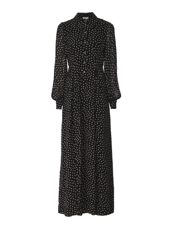 The Ganni georgette maxi dress is the perfect transitional piece, taking you from day to night and from winter into spring. This versatile dress has been expertly crafted in a lightweight non-stretch fabric and falls to an elegant long length with a lined skirt. The dress is cut for a laid-back loose fit and features a button down placket, sheer long sleeves and all-over polka dot print for a bold finish.