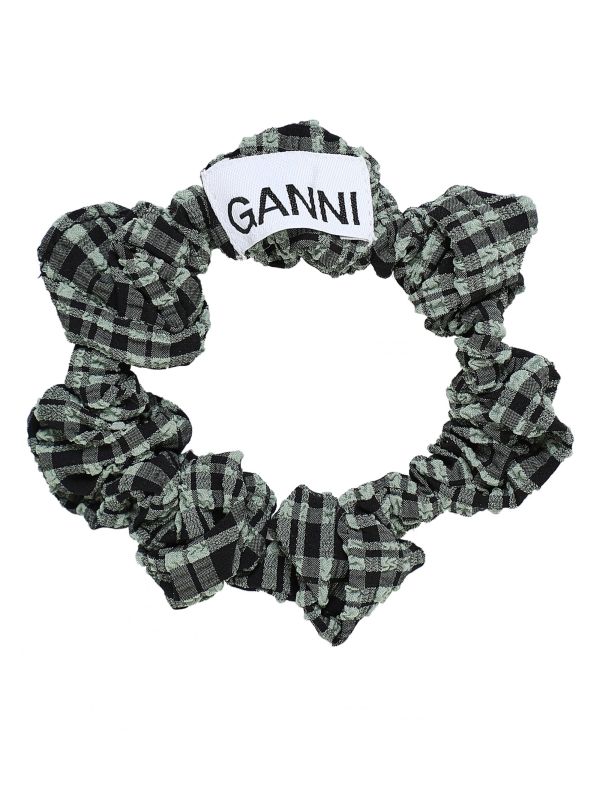The search for the perfect scrunchie is over with the GANNI scrunchie. Responsibly crated from over 50% certified recycled polyester, the scrunchie has a textured finish to the fabric. Boasting an exposed logo tag and a seersucker check design all over, the GANNI scrunchie is perfect for your ponytails or styling around your wrist.