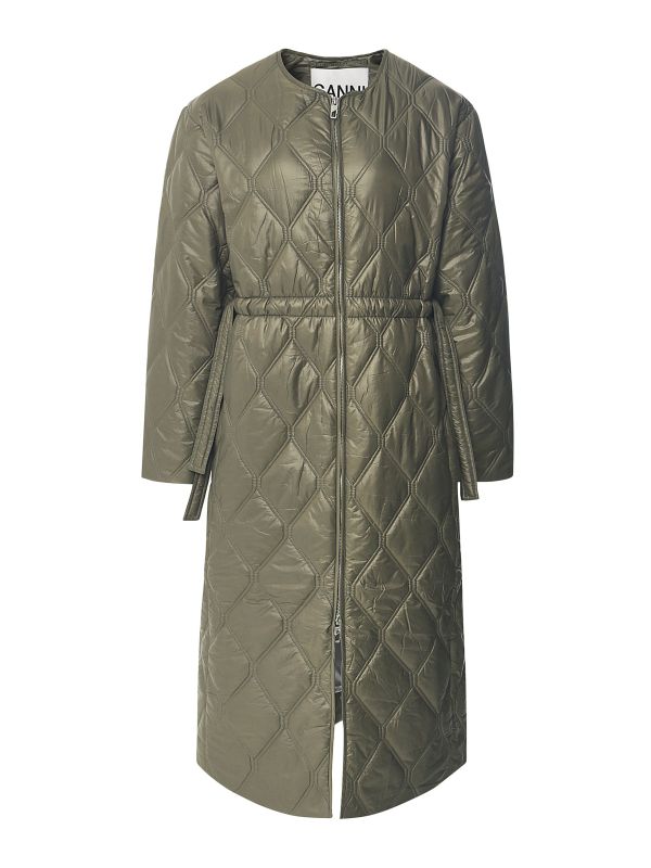 Lend an urban edge to your winter outerwear with the GANNI quilted coat. Engineered in a lightweight, high-shine fabric, the green longline coat has been designed with a box quilt construction that ensures warmth. Featuring a neat round neckline with two-way zip closure and side pockets, whilst the drawstring waist allows for a customised fit.