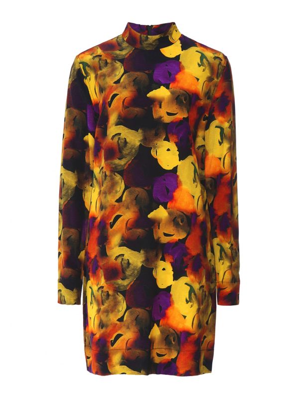 Go bold this season in the beautiful Ganni shift dress. Expertly crafted in a luxurious silk blend, this abstract floral dress is perfect for day-to-night styling. This sleek mini features a mock neck, long sleeves and concealed zip fastening, while its watercolour print provides a vibrant look.