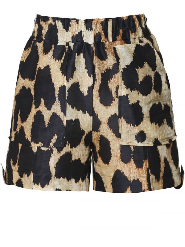 Silk Linen Leopard Print Shorts