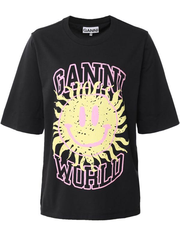 The GANNI Smiley t-shirt is a super-cool staple to team with denim, midi skirts or straight-leg pants. This relaxed-fit tee is crafted from 100% organic cotton and features a round neckline, elbow-length sleeves and a signature smiley logo graphic to the front.