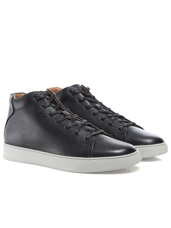 The Geox Coryan sneakers draw inspiration from classic tennis-court shoes with a mid-top profile. Engineered in premium leather with a super smooth finish, the black sneakers are designed with the label's Respira breathing system for optimum day-long comfort. Featuring a lace-up fastening and hygienic removable footbed, whilst the contrast outsole adds striking detail.