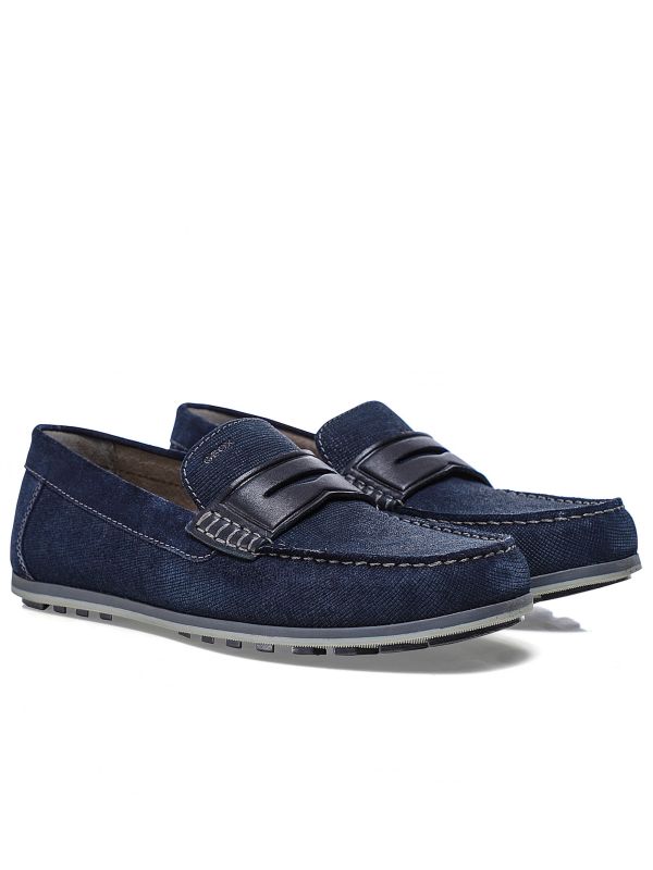 Invest in versatile summer footwear with the Geox Mirvin penny loafers. Expertly crafted in premium textured leather and crafted in a traditional moccasin construction, the loafers are wonderfully lightweight and pliant. The slender non-slip rubber sole is of an exclusive patent that allows for natural temperature regulation creating the perfect inner microclimate, whilst the deep navy hue means you can easily team with an array of clothing.