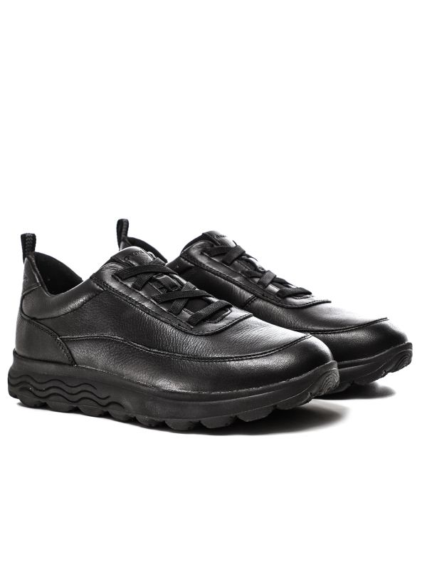 The Geox Spherica B trainers are the perfect combo of comfort and style. Engineered with smooth leather uppers, the black trainers have been designed with the label's patented technology with Zero Shock System to maximise breathability and cushioned comfort. Featuring a classic lace-up design, branded details and contrast panels offering a dynamic appearance.