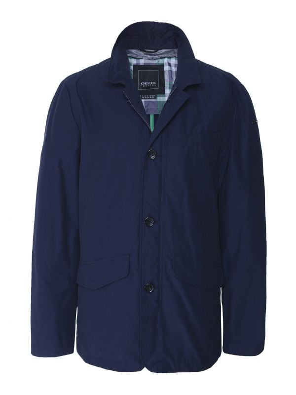 The Geox Vincit jacket is the perfect cover-up for mid season dressing. In a lightweight design, the jacket features a button and concealed zip fastening, stand collar with buttoned throat strap and a multitude of functional front pockets. The woven outer fabric has been specially treated for water-resistance, whilst the label's patented shoulder tape cleverly allows humidity to pass through to ensure a breathable and comfortable wear all-day long.