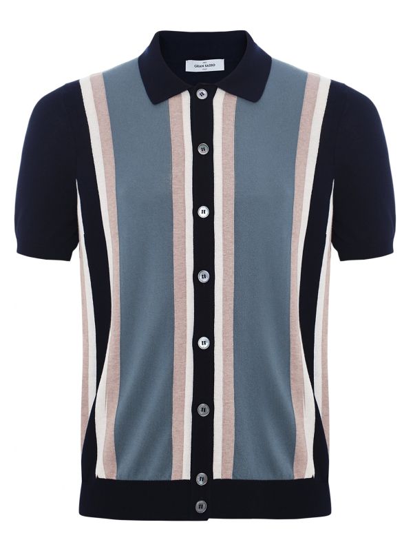 Embrace retro-sports style this season with the Gran Sasso striped shirt. Expertly crafted in Italy using premium knitted cotton, the short sleeve shirt offers a sumptuously soft handle. Featuring a fine rib collar with button-through fastening and ribbed trims for a close-cut silhouette, whilst the striped inlays make for a dynamic aesthetic. The Gran Sasso shirt is finished with iridescent mother-of-pearl buttons adding stylish detail.