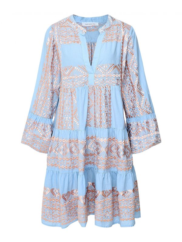 The Kori embroidered dress is a must-have piece for off-duty summer styling. Crafted in 100% cotton for lasting comfort on warm days, this elegant dress features a flattering V-neck, stand collar, flowing bell sleeves and all-over embroidery for a statement finish. Team this beautiful Kori dress with sandals and sunglasses on your next vacation.