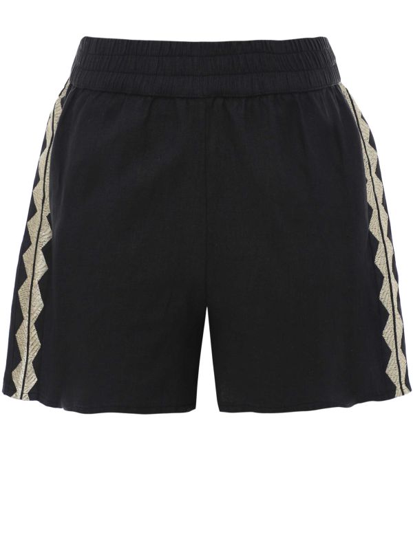 Slip into style and comfort with the Feather Shorts by Greek Archaic Kori. Expertly crafted from 100% linen, these Greek Archaic Kori shorts are made with an elasticated waistband for the most comfortable fit. The sides are decorated with gold-embroidered zig zag patterns, adding a touch of glam to an everyday style.