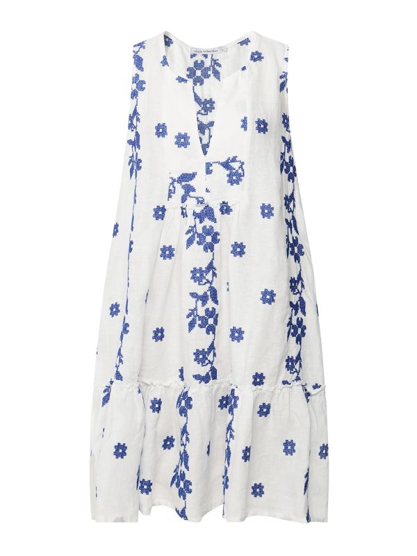 The Greek Archaic Kori Daisy embroidered mini dress will add a youthful essence to your holiday wardrobe. Featuring a feminine daisy design and delicate tiered style, this item is destined to be a suitcase staple. Pair this dress with some espadrilles for a lush summer look.