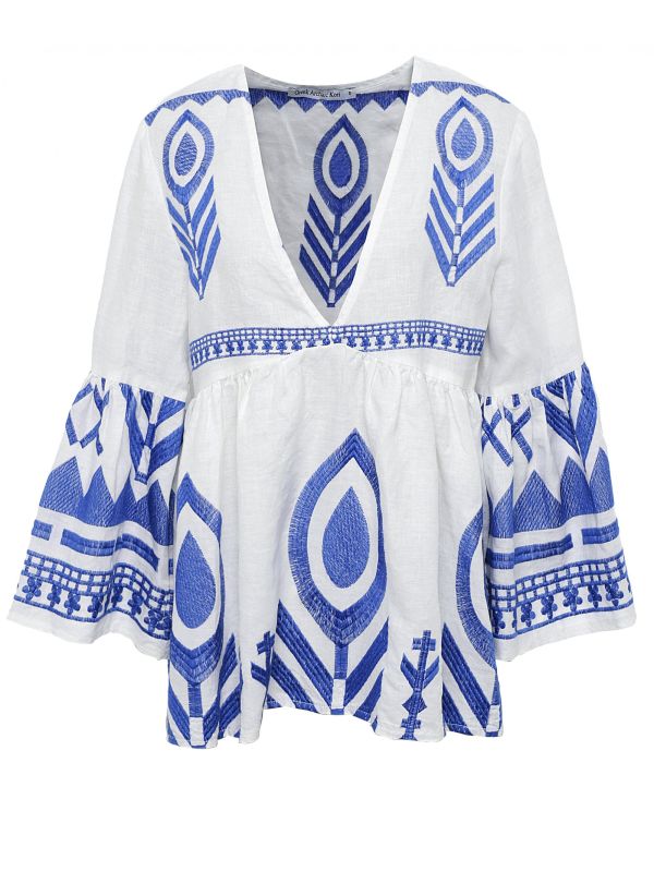Linen Embroidered V-Neck Blouse