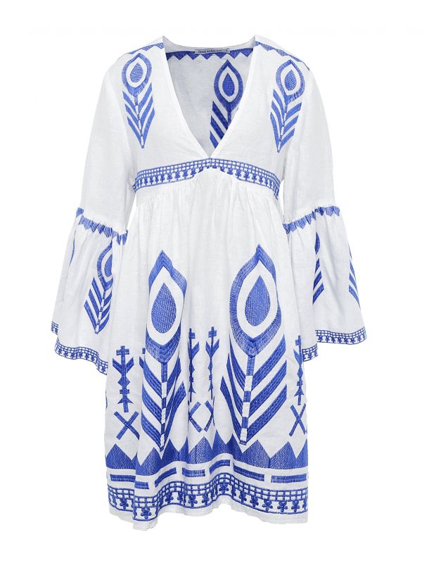 Refresh your wardrobe this season with the beautiful Kori embroidered dress. Crafted in linen for the perfect summer look, this floaty mini dress is a must for your next holiday. It features a flattering V-neck, 3/4 bell sleeves and embroidered detailing throughout for a statement finish. Team this Kori dress with sandals and sunglasses on the beach.