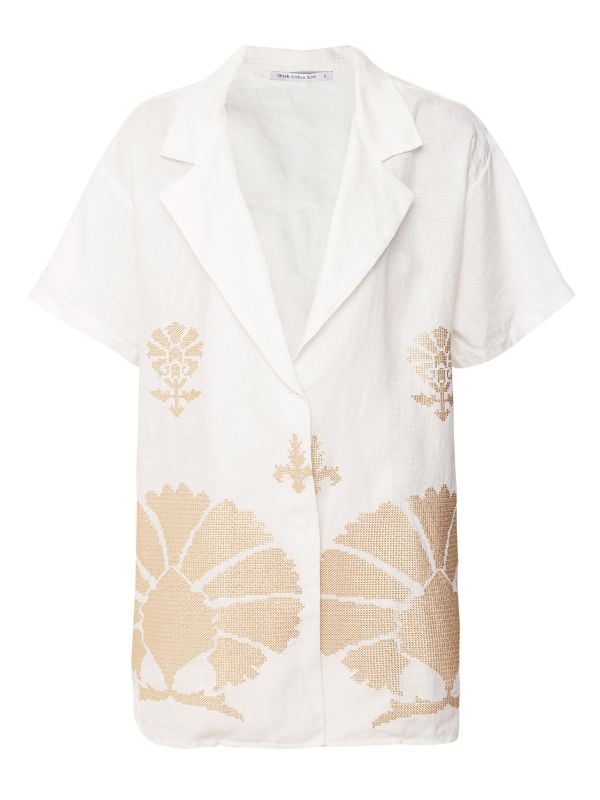 Elegantly designed and crafted in Greece, the Greek Archaic Kori peacock jacket is a must-have for the summer sun. Made in pure linen with a relaxed cut, the jacket ensure a light feel and essential cooling qualities. Featuring a notch lapel collar with button closure and short sleeves, whilst the stunning embroidered peacock detail delivers a signature finish synonymous with the label.