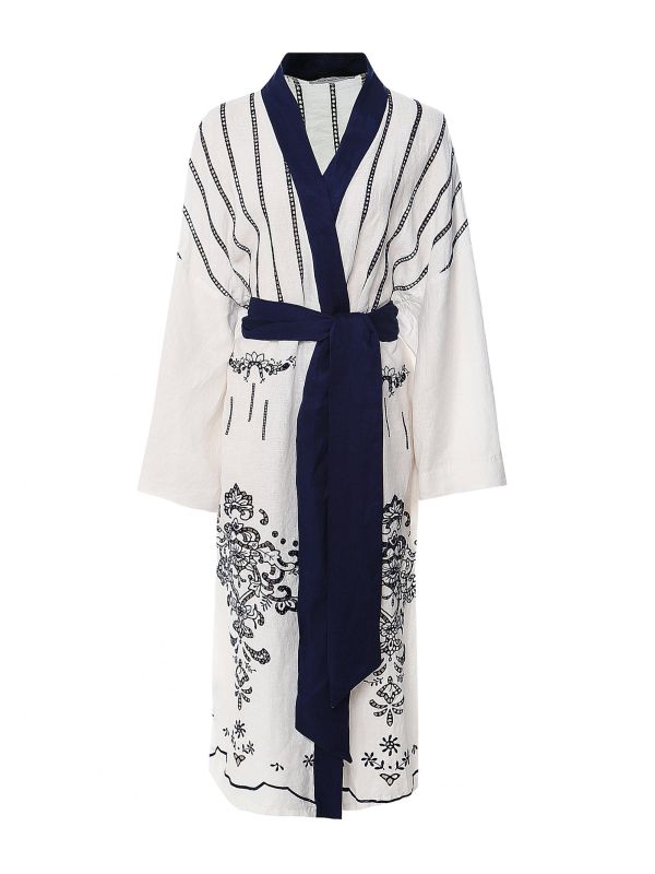 The Kori kimono is the perfect piece for creating an effortless style this season. Crafted from pure linen, the kimono has been cut to a relaxed fit with a longline. Offering long wide sleeves, a contrasting tie to the waist and an embroidered design all over, the Kori kimono pairs perfect with your favourite pair of sandals.