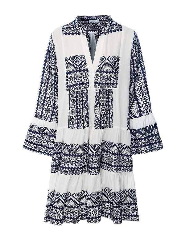 If you're looking to elevate your casual ensembles, the Kori triangle dress is the perfect piece. Beautifully crafted from pure cotton, the dress has been cut to an effortless relaxed fit with a mini length. With long wide sleeves, a v neckline and a tiered design, the dress is complete with a contrasting embroidered design throughout.