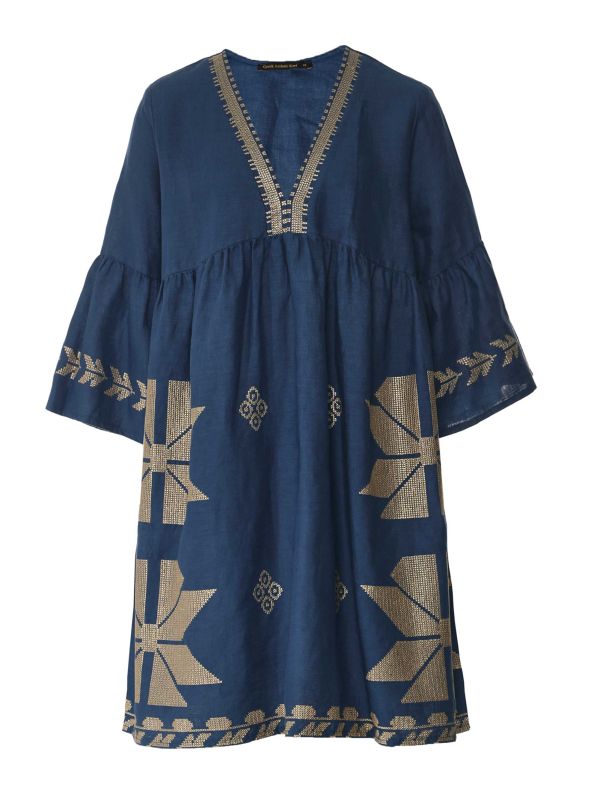 The Greek Archaic Kori V-Neck Embroidered Tunic is your next holiday essential. This soft tunic made from linen is lovely and lightweight for the sunshine. It features a flattering V neckline, 3/4 length flute sleeves and contrast embroidery to the neckline, sleeves and skirt. Style it as a tunic with a pair of denim shorts or wear it as a mini dress with sandals.