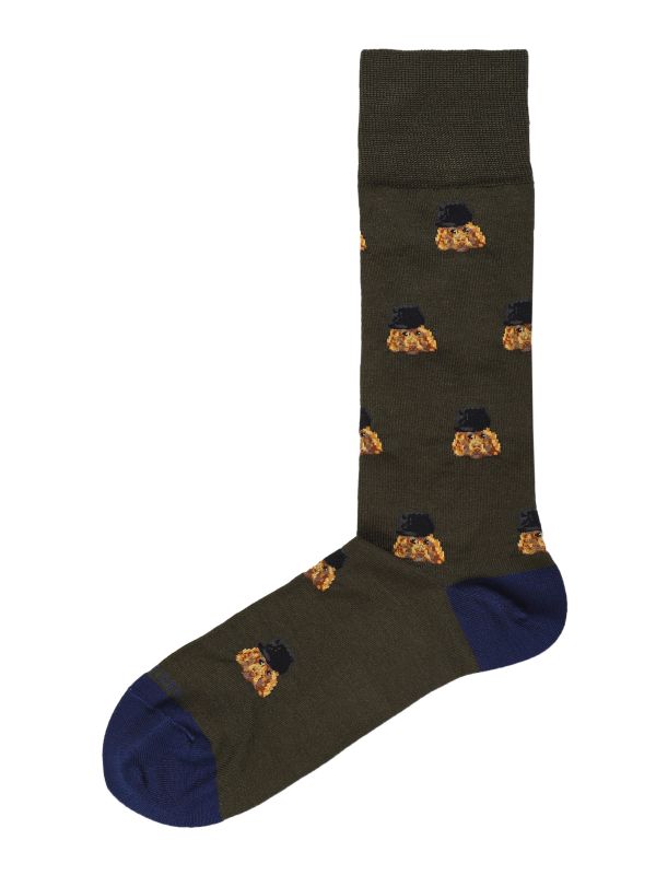 The Hackett Harry socks are part of the label's seasonal 'Harry' range. Crafted in a mercerised cotton rich knit with stretch and hand-linked toe seams, the socks will ensure longevity and day-long comfort. Featuring ribbed ankle cuffs and contrast heel and toe panels, whilst the repeat 'Harry' dog is an ode to Jeremy Hackett's Sussex spaniel.
